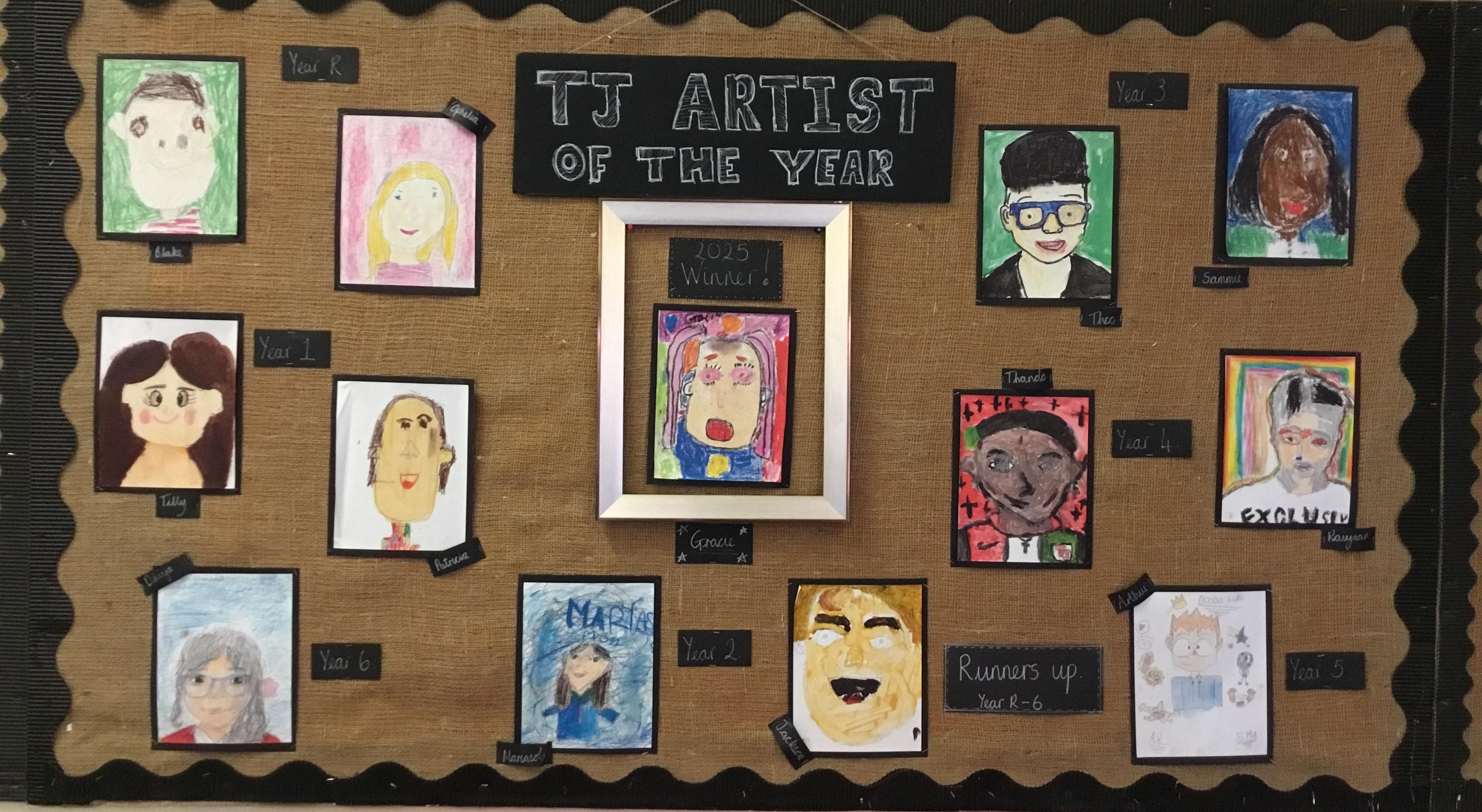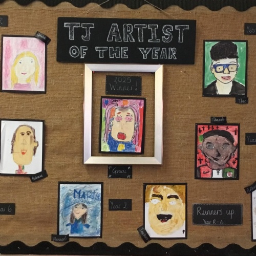 This year's whole school focus, for our TJ Artist of the Year competition, was self portraits. The children looked at a wide variety of portrait artists as well as different genres before embarking on their own creations. Every child had a canvas to work on, and they were free to experiment with a variety different mediums.
